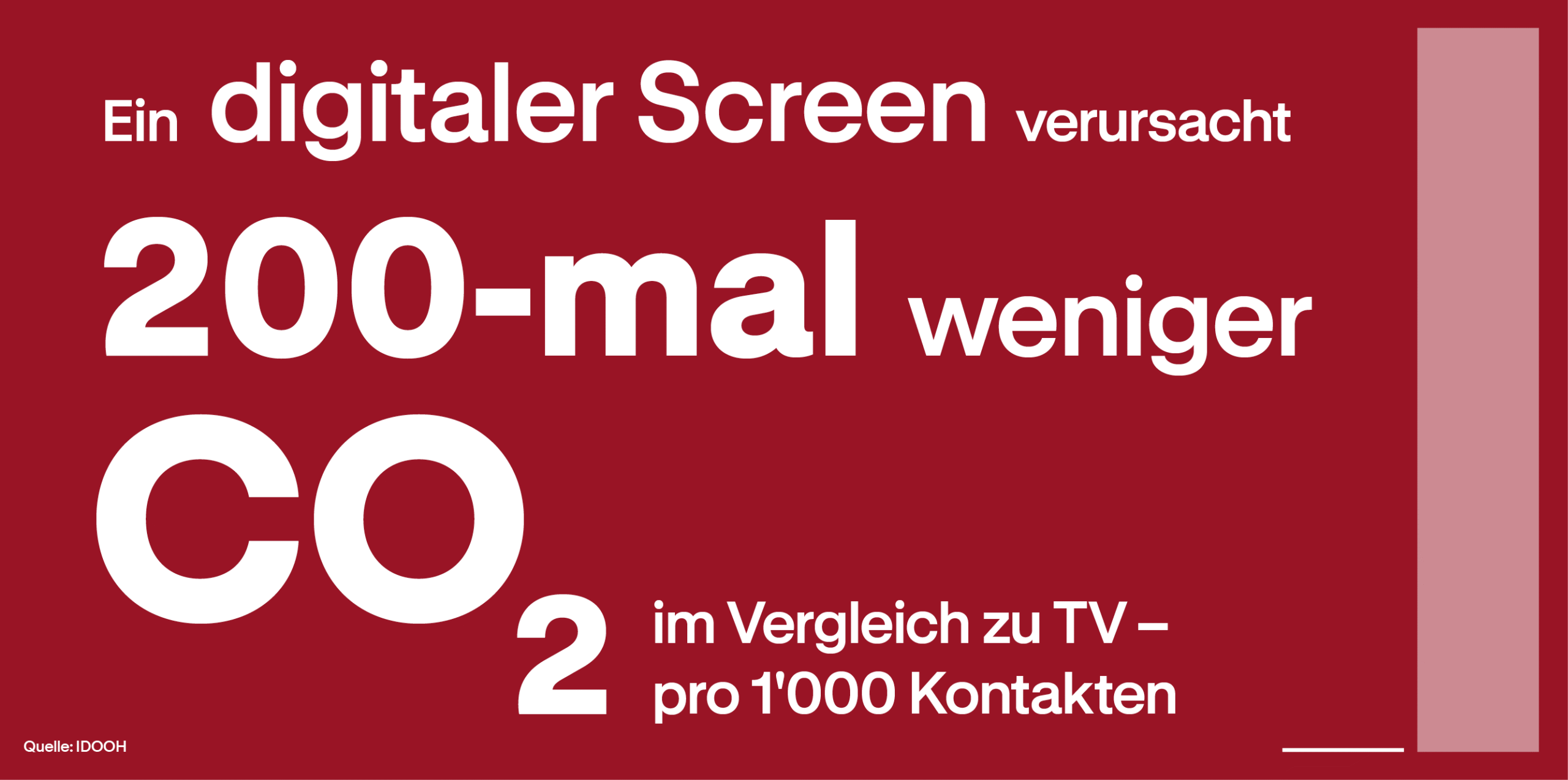 Das Plakat – analog wie auch digital – hat unter allen Werbemitteln den weitaus kleinsten CO2-Fussabdruck. Studien zeigen auf, dass das Plakat als Werbeträger durch die Ansprache vieler Menschen gleichzeitig den tiefsten CO2-Fussabdruck aller Werbemittel aufweist. Das Plakat trägt in diesem Sinne zur Erreichung von Klimazielen bei.